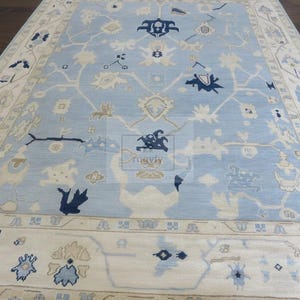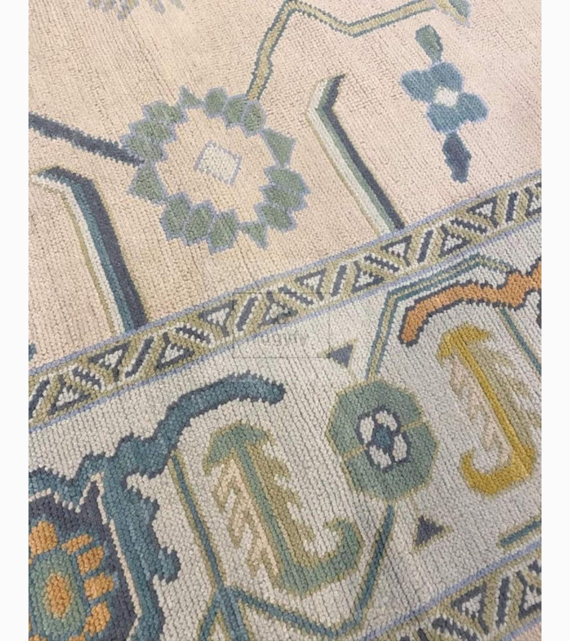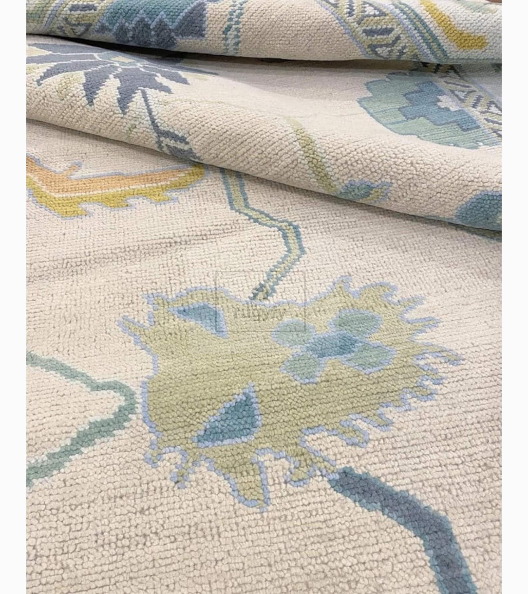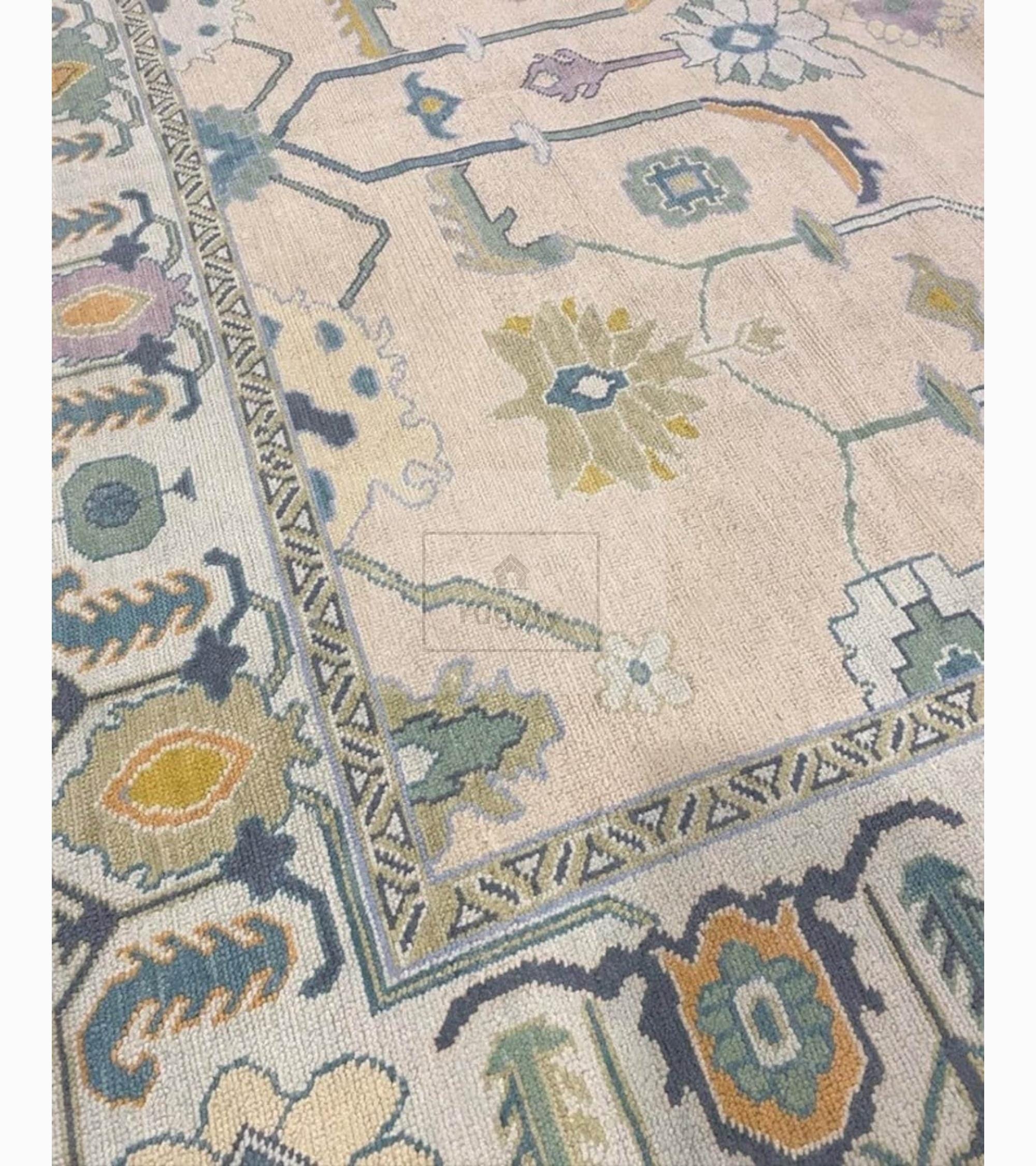 8x10 hand-knotted wool rug , Oushak rug” / “Oushak wool rug ,boho area rug , cream blue green rug ,Turkish style wool carpet , modern boho rug , neutral boho decor , floral geometric rug , soft pile wool rug , bohemian living room rug , pastel rug , handmade floor rug , hand spun wool carpet , sustainable wool rug , earth tone rug