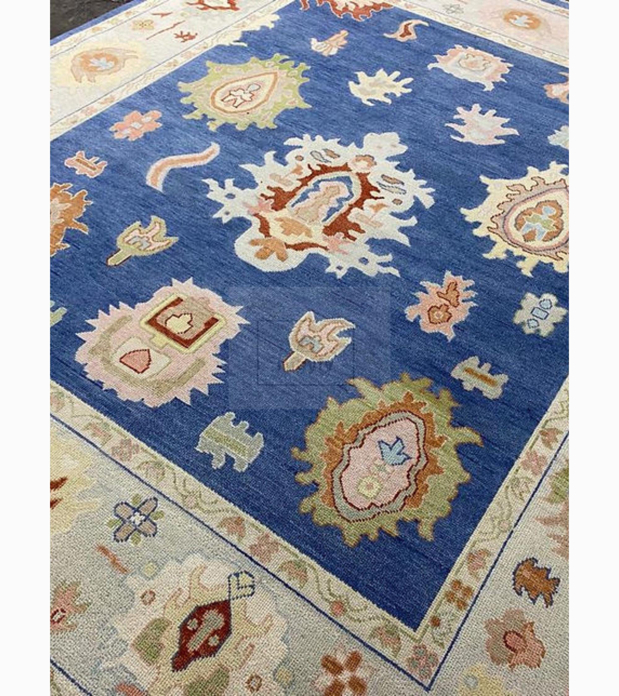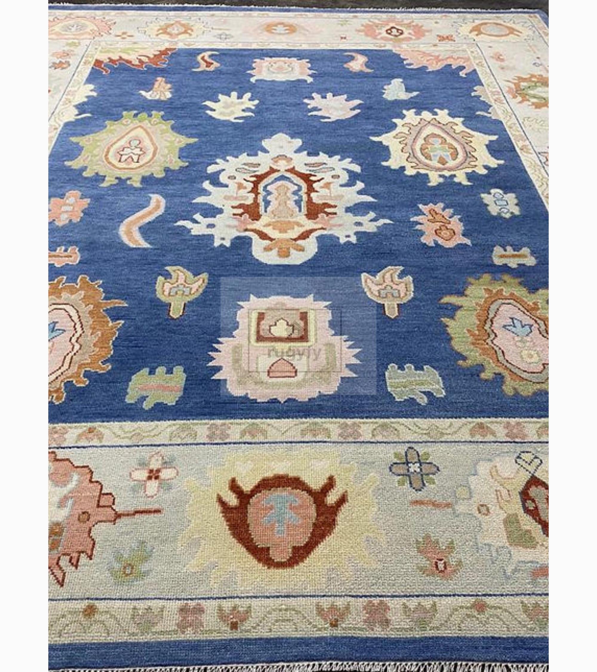 Transform your home with this 8x10 Blue Oushak Rug, hand-knotted with 100% premium wool by skilled artisans in Bhadohi, India — the world’s carpet capital. Featuring a rich royal blue background with pastel floral motifs, this Turkish-style Oushak rug combines tradition and timeless beauty.