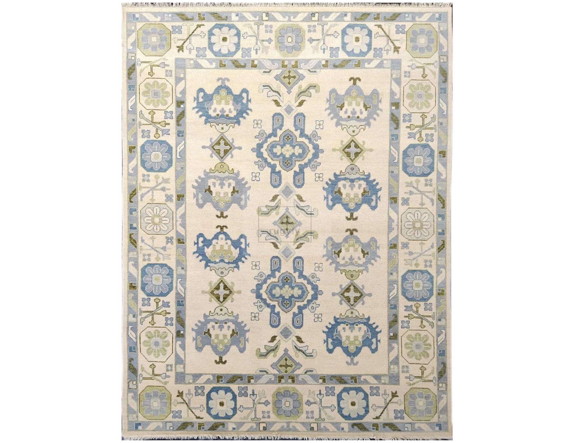 8x10 hand-knotted wool rug , Oushak rug” / “Oushak wool rug ,boho area rug , cream blue green rug ,Turkish style wool carpet , modern boho rug , neutral boho decor , floral geometric rug , soft pile wool rug , bohemian living room rug , pastel rug , handmade floor rug , hand spun wool carpet , sustainable wool rug , earth tone rug , pastel Turkish Oushak rug