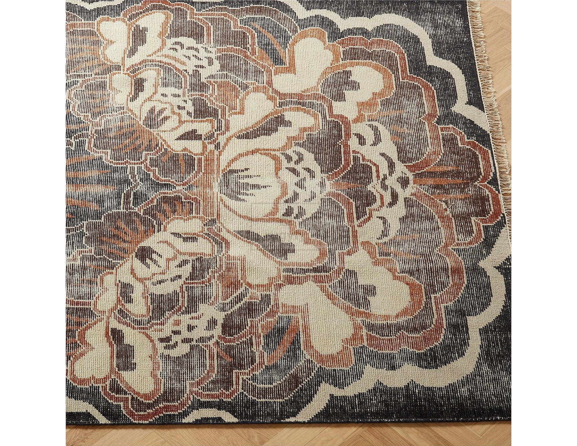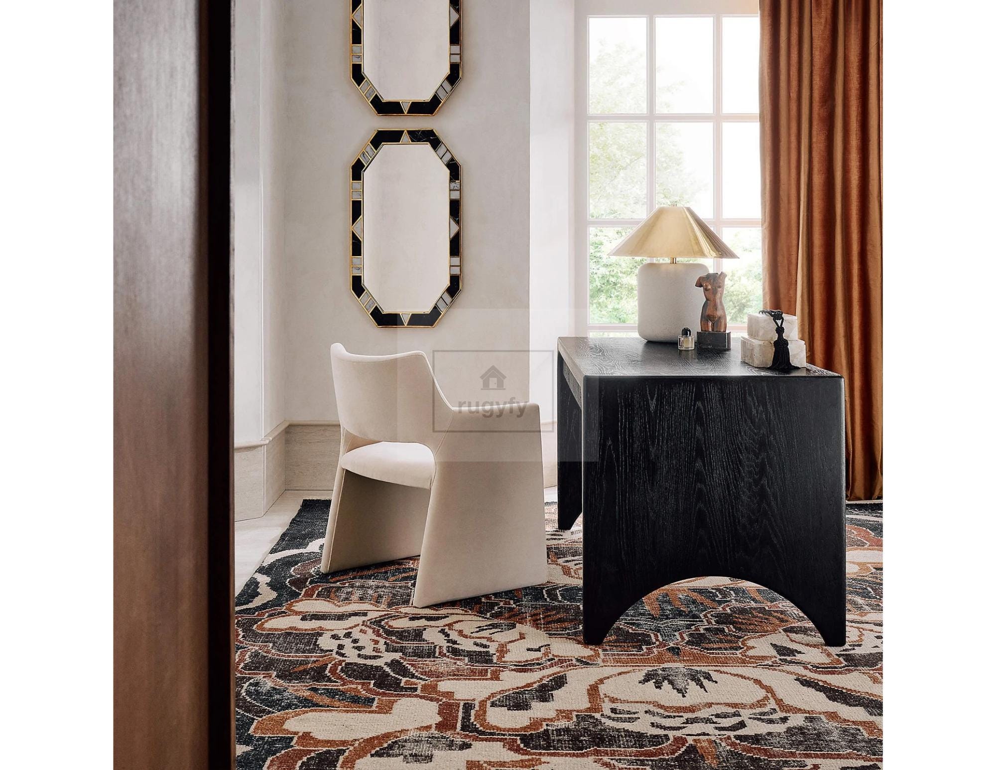 Bring bold sophistication into your home with this Modern Floral Wool Rug by RugsArtIndian. Hand-knotted with premium 100% New Zealand wool, this statement piece features a charcoal, beige, and rust-brown color palette with large contemporary floral motifs that blend traditional artistry with a modern aesthetic.