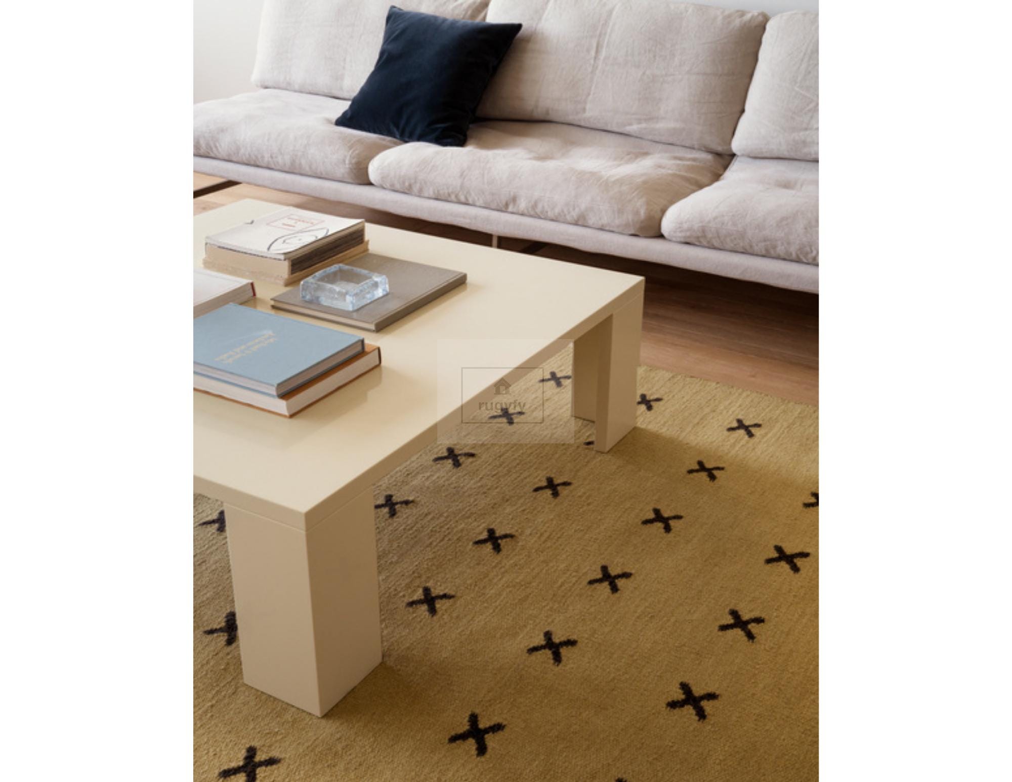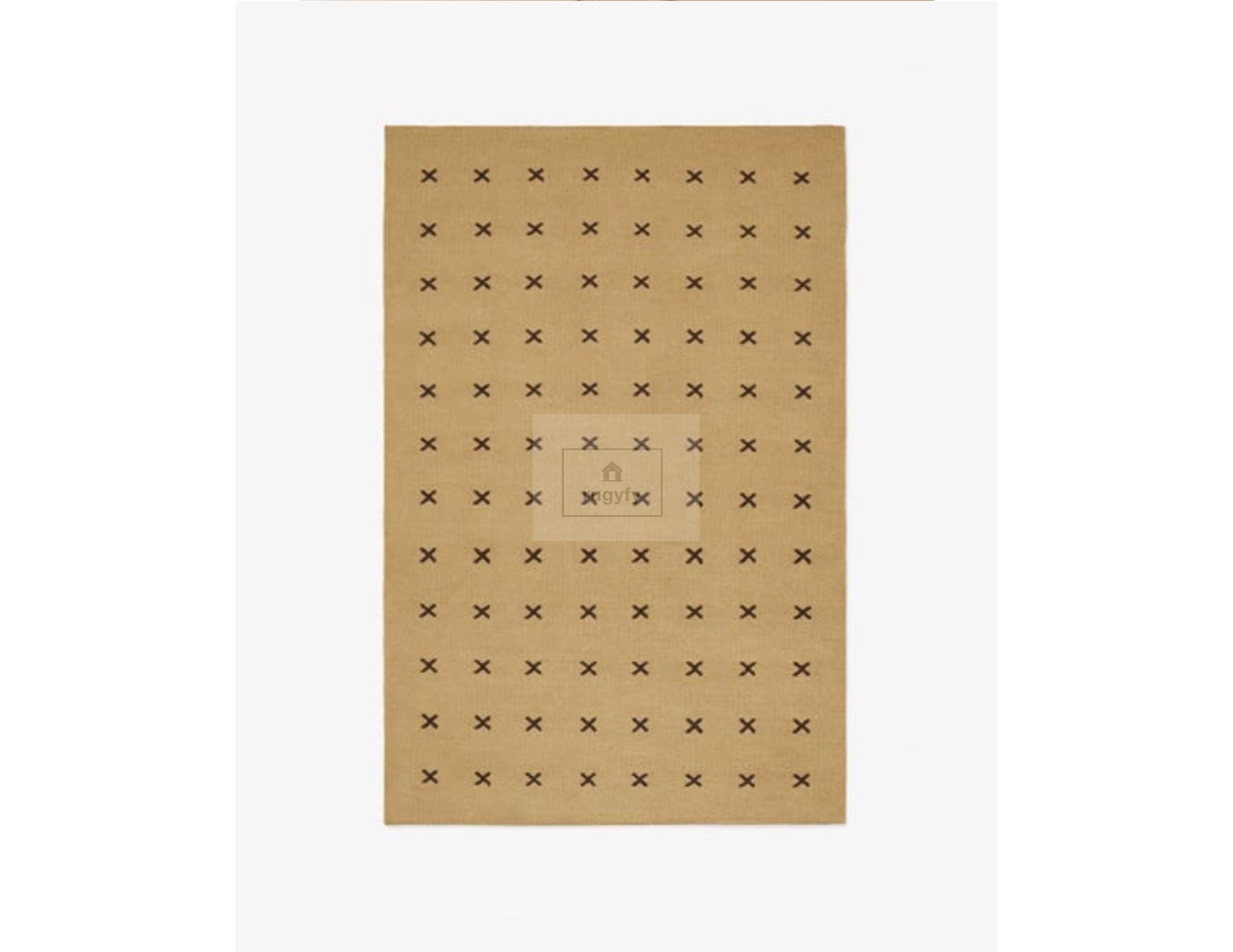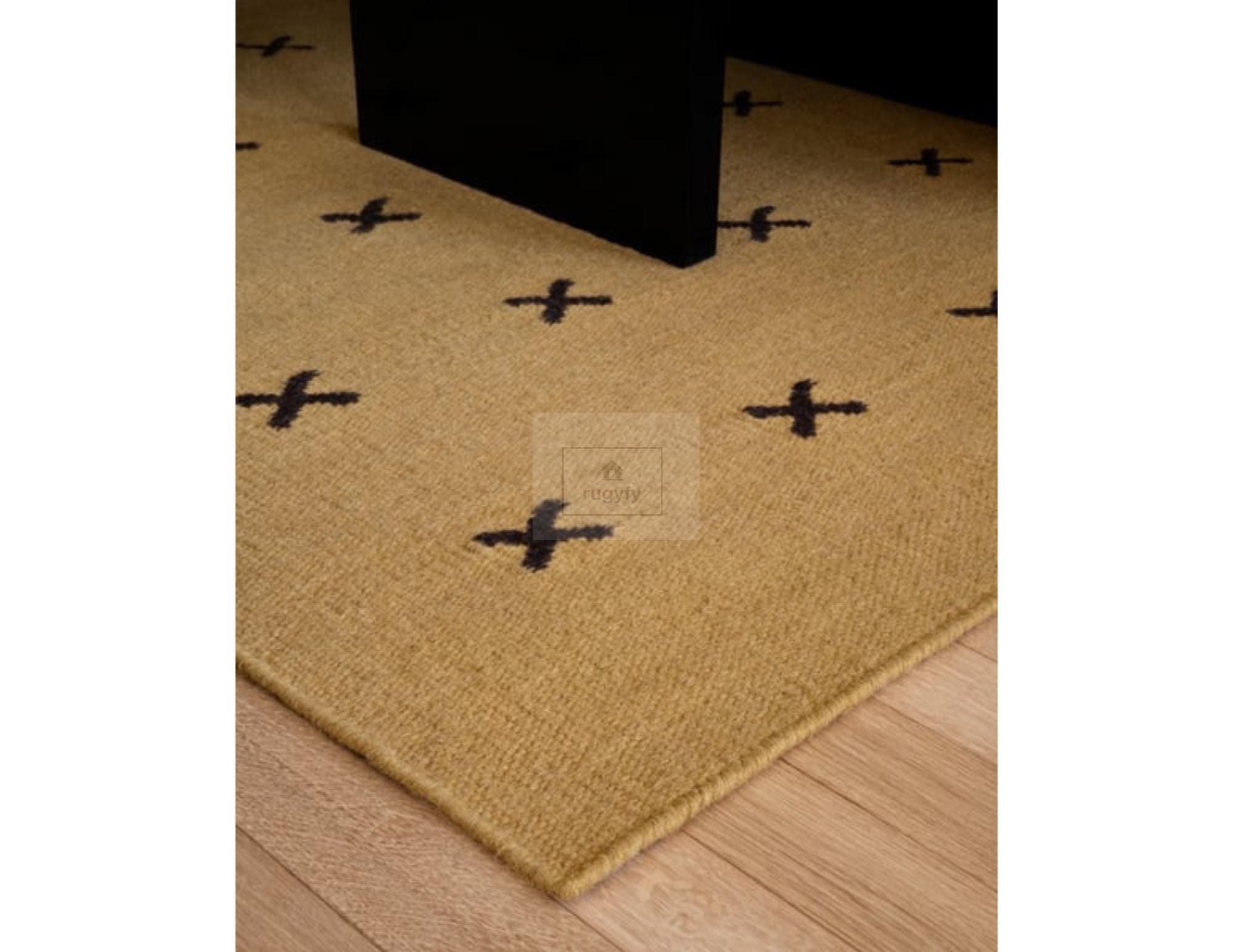 Bring warmth, texture, and character into your home with this handwoven flatweave wool rug. Crafted by skilled artisans in India, each piece is a testament to traditional craftsmanship—blending natural materials with modern design. The low‑profile flatweave construction makes the rug durable yet lightweight, while its reversible design ensures extended use A graphic cross (plus‑sign) pattern in deep black is carefully woven across a warm mustard/beige base, adding a bold yet minimalist accent that complements contemporary, Scandinavian, or bohemian interiors