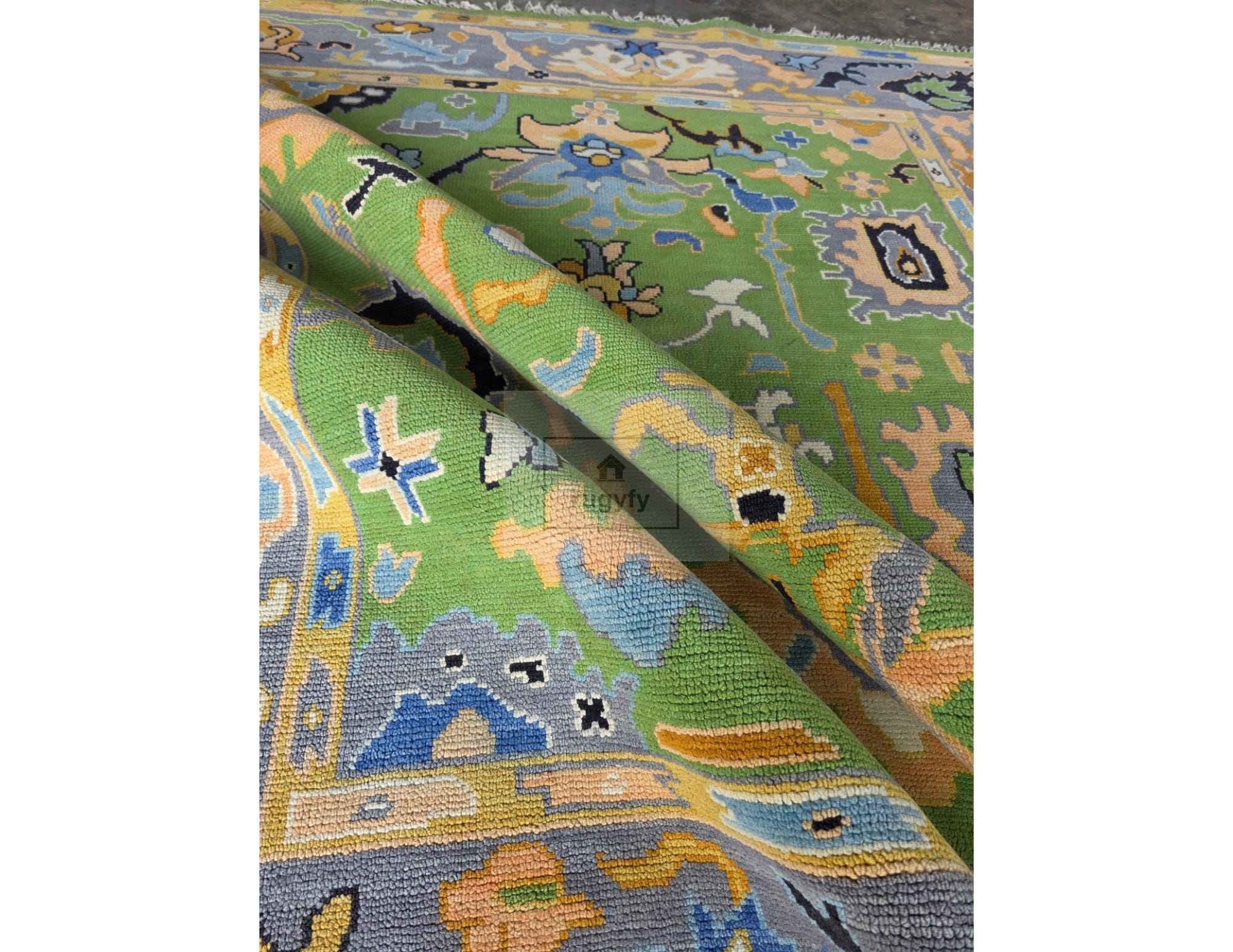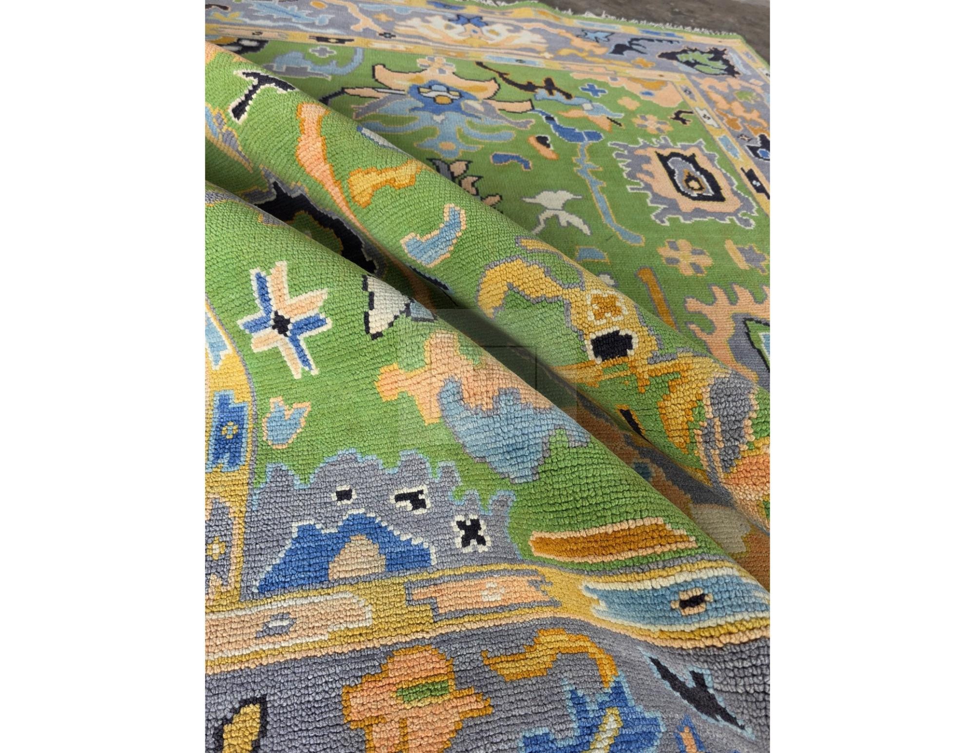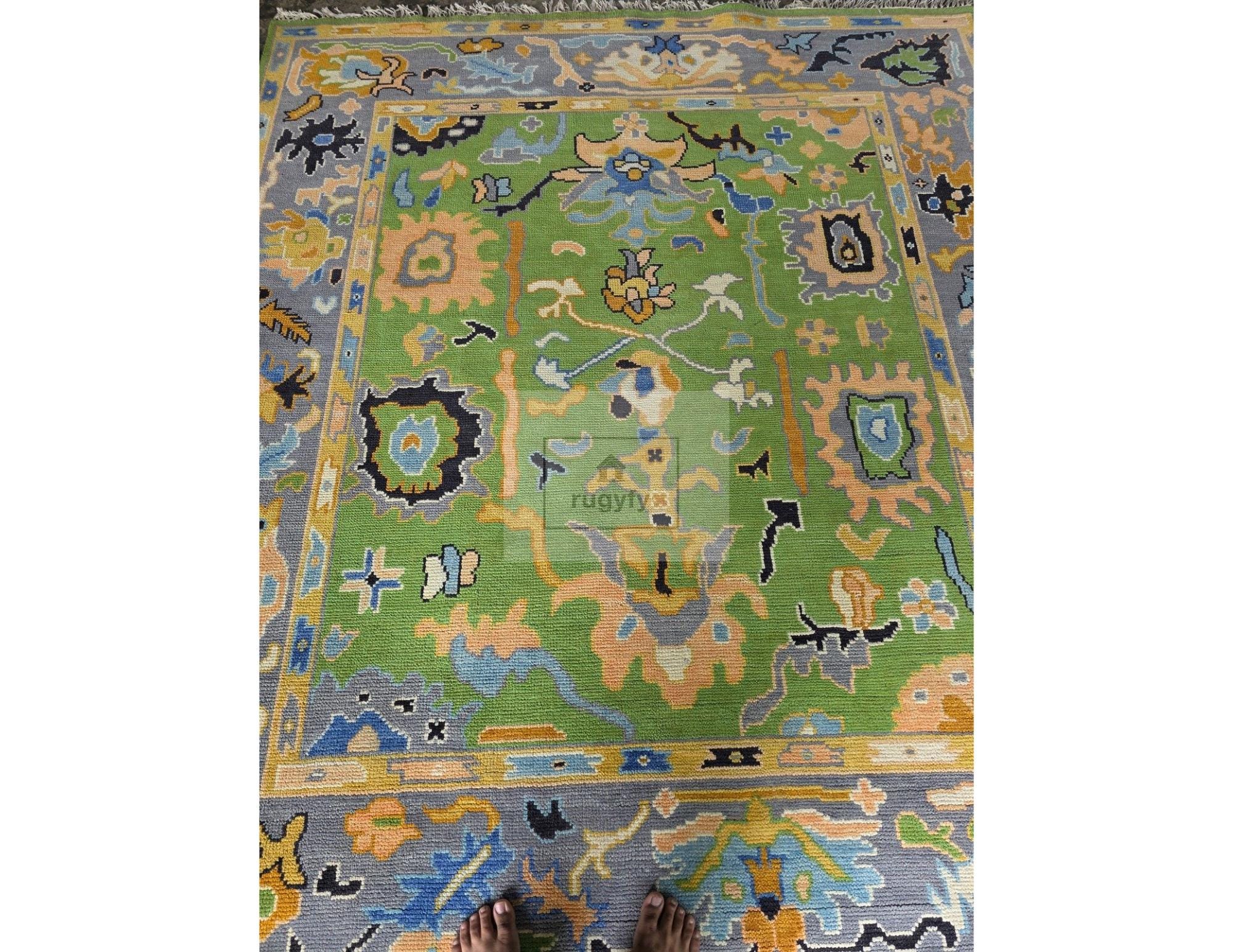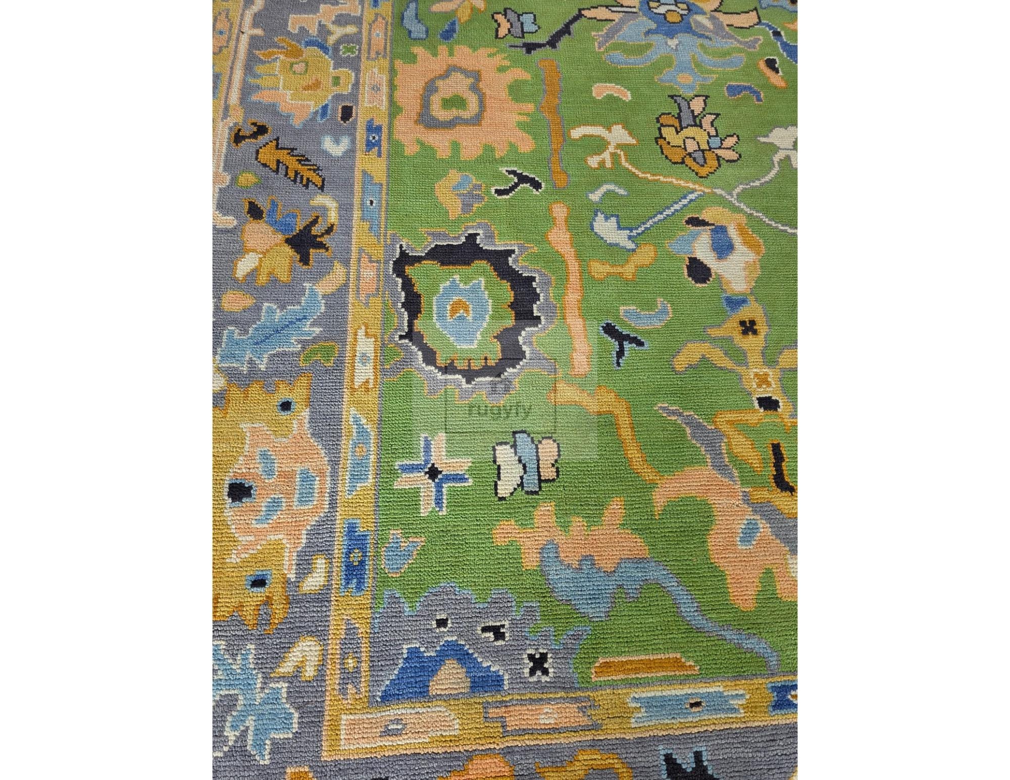 Elevate your home with this Handmade Turkish Oushak Wool Rug (8x10 ft), masterfully crafted by skilled artisans using premium New Zealand wool. Featuring a stunning palette of green, blue, peach, yellow, and soft grey, this rug blends timeless Oushak patterns with a modern, refreshing color tone—perfect for living rooms, bedrooms, dining rooms, and designer spaces.