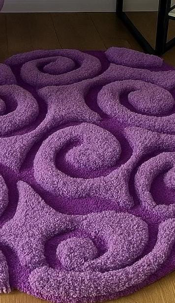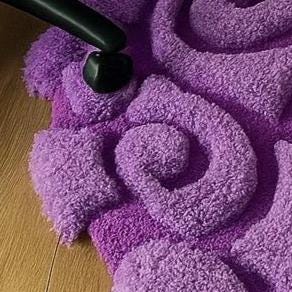 Add a bold and cozy statement to your space with this hand-tufted 100% wool rug, crafted for both comfort and style. Featuring a unique swirl design in rich purple tones, this rug brings a modern, artistic touch to gaming rooms, bedrooms, studios, or living spaces.