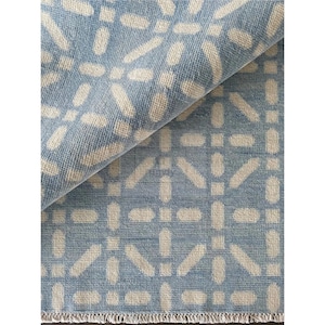 Pastel Oushak Area Rug 8x10 ft , Hand Knotted Wool, Pale Blue Cream Sage
