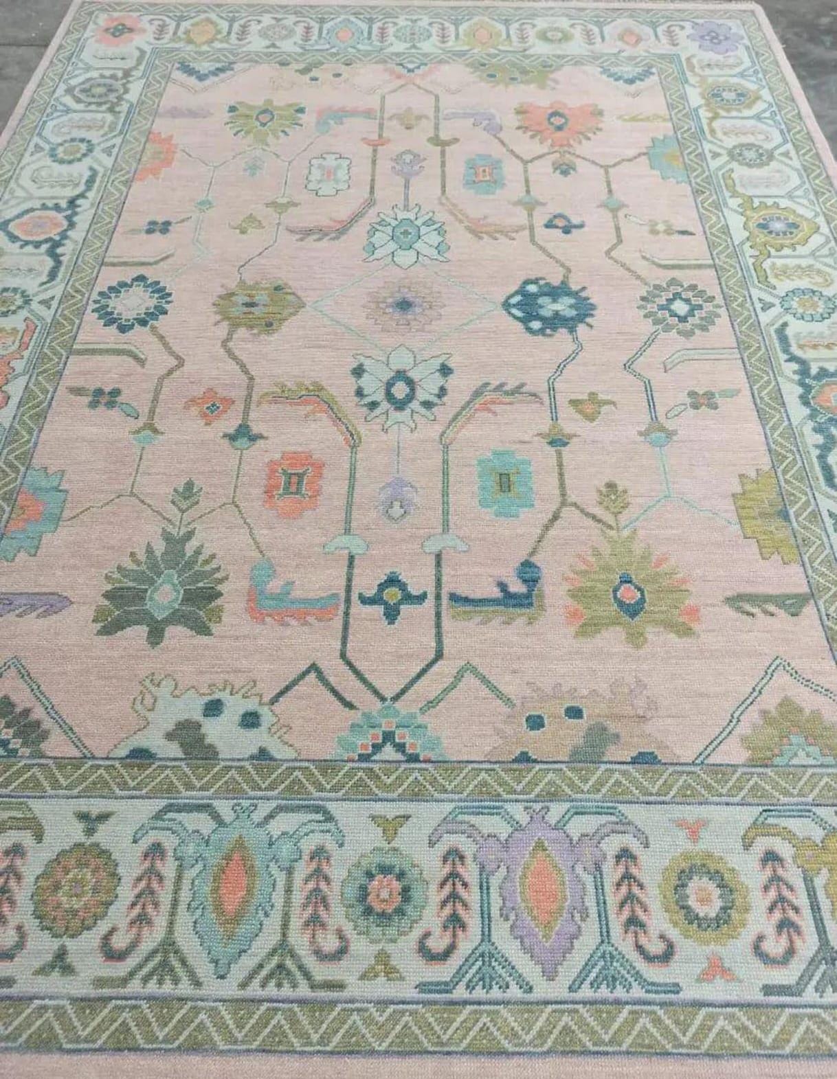 Handmade Pink Oushak Wool Rug | Pastel Turkish Carpet 8x10 | Soft Floral Vintage Style Rug for Bedroom, Living Room , Nursery Decor