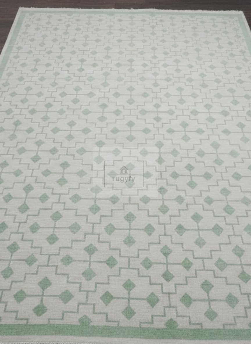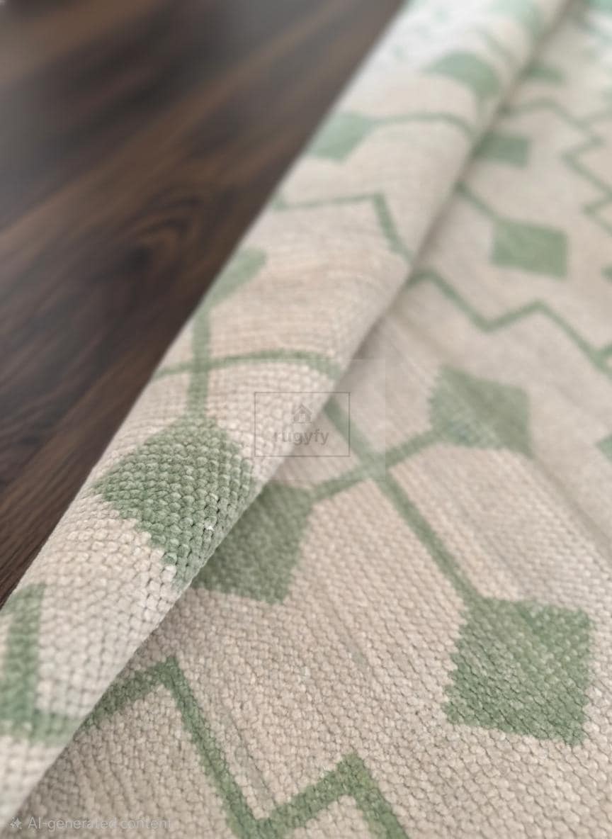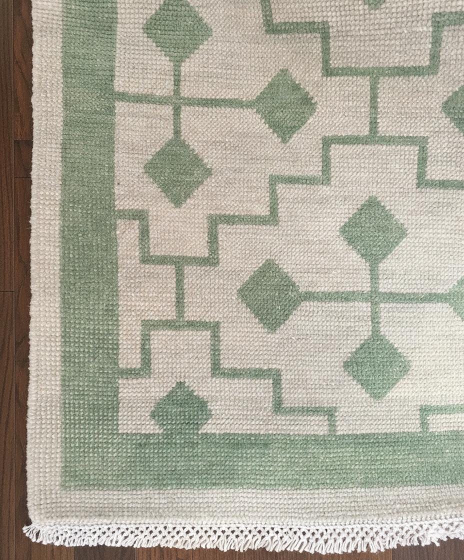 Keywords: oushak area rug, turkish geometric rug, sage green carpet, ivory green rug, large neutral rug, boho farmhouse rug, scandinavian rug, coastal area rug, modern oushak, hand knotted wool carpet, 9x12 living room rug, geometric wool rug, minimal green rug