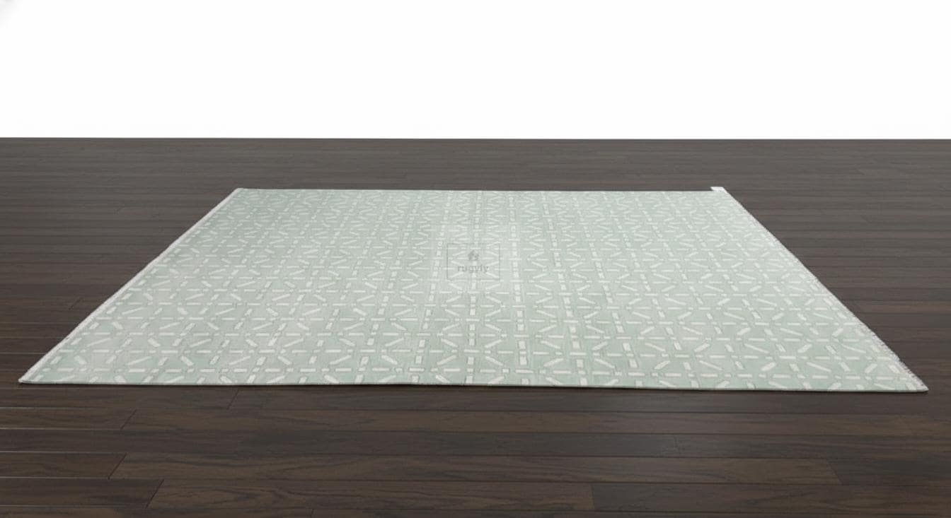 Each rug is carefully hand-knotted by skilled artisans using premium wool to create a durable, structured feel with a comfortable underfoot texture. The soothing green base and ivory accents brighten rooms while staying neutral and easy to style with wood floors, white walls, and natural furniture.