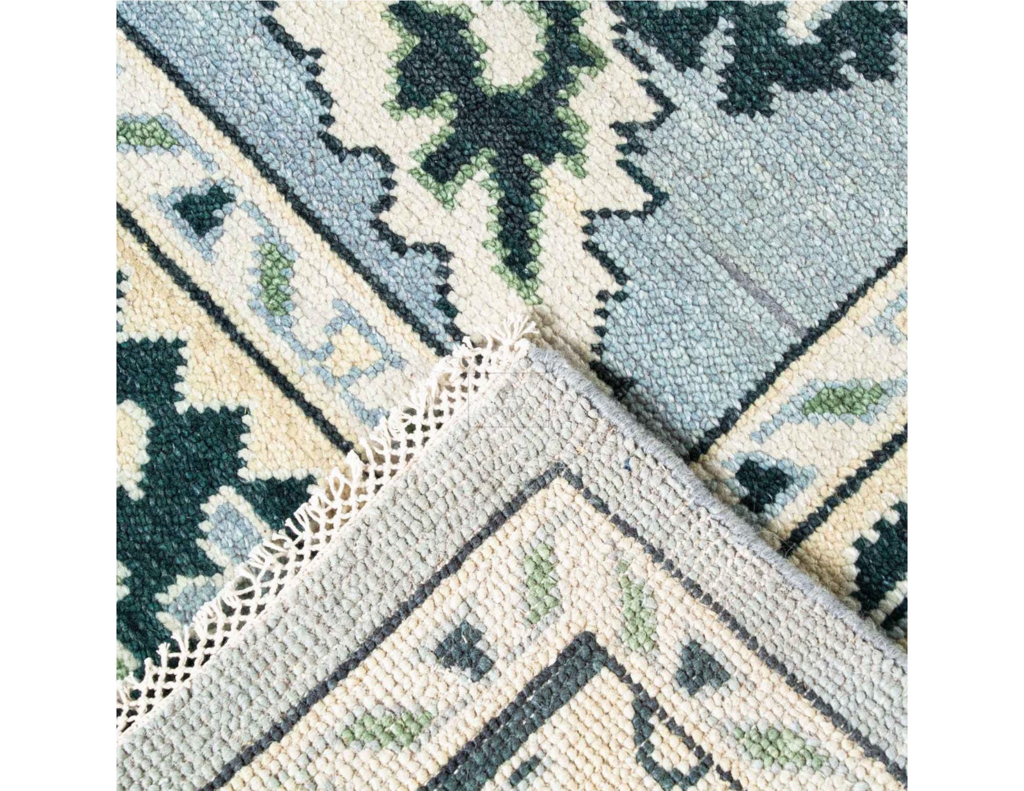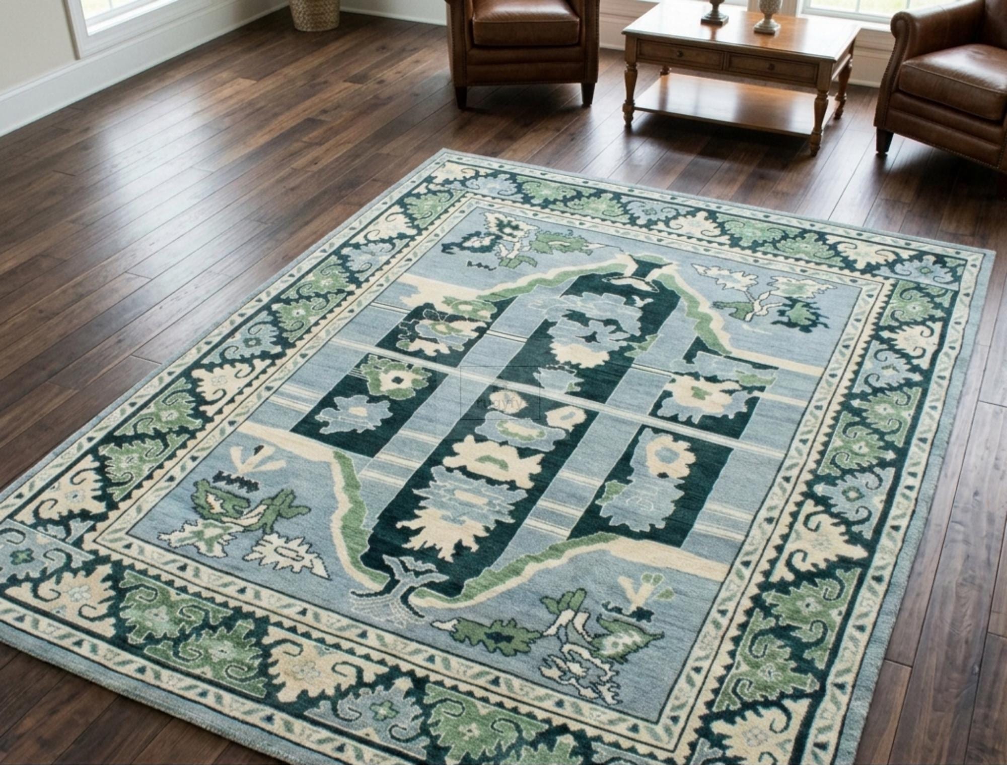 This isn't just a rug β it's a statement piece. The rich teal and sage green palette with soft powder blue field creates a sophisticated, calming atmosphere that works beautifully in living rooms, bedrooms, dining rooms, and entryways. The bold floral medallion design is rooted in centuries-old Anatolian weaving tradition, giving your home an heirloom-quality centerpiece that gets better with age.
