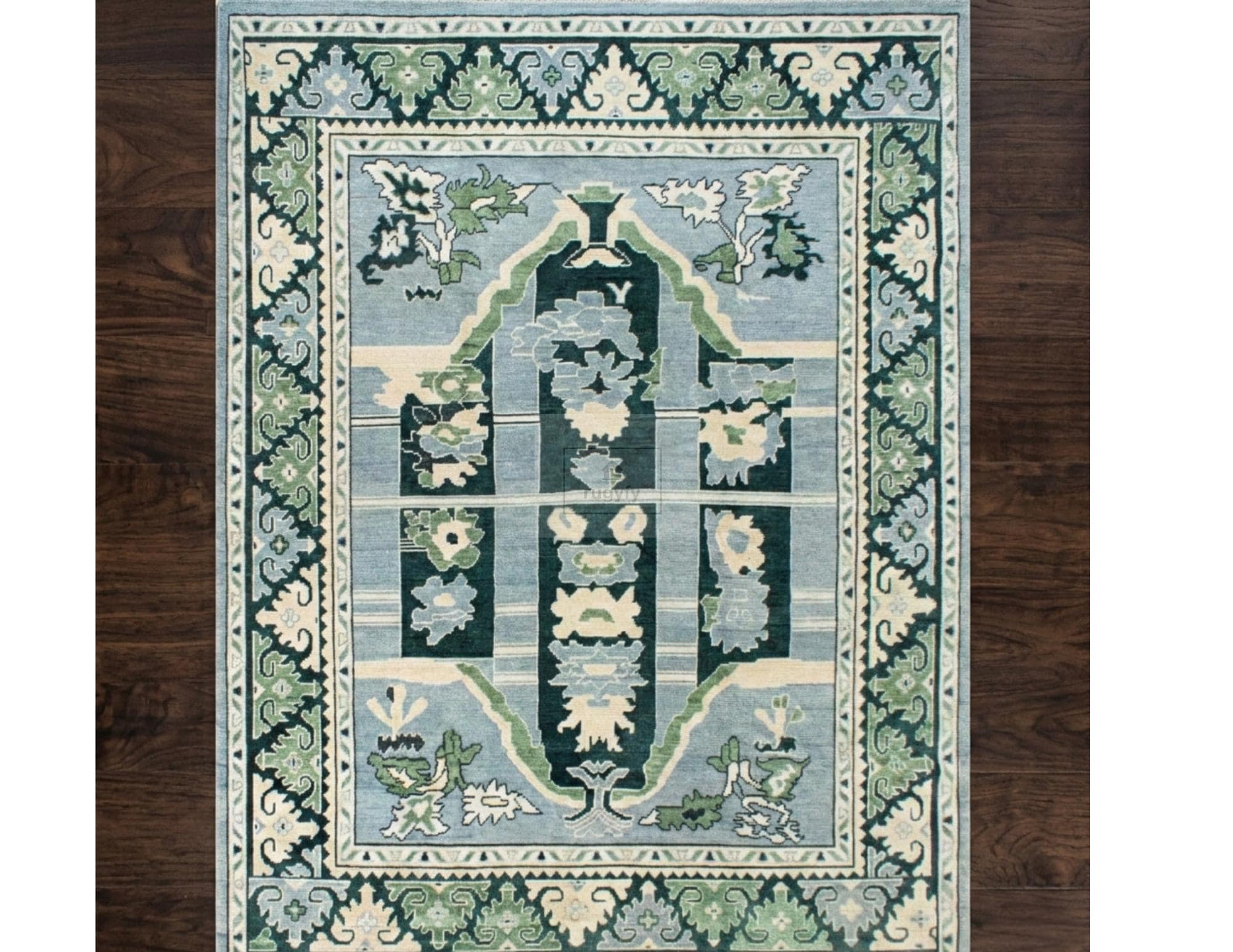 8x10 oushak rug, blue green oushak rug, hand knotted wool rug, teal floral area rug, turkish oushak rug, handmade wool rug, living room rug 8x10, blue oushak rugs, floral botanical rug, green turkish rug, handknotted rug, coastal farmhouse rug, blue teal rug, green wool rug, large area rug, oushak area rug, turkish carpet, floral wool rug, artisan handmade rug, heirloom quality rug