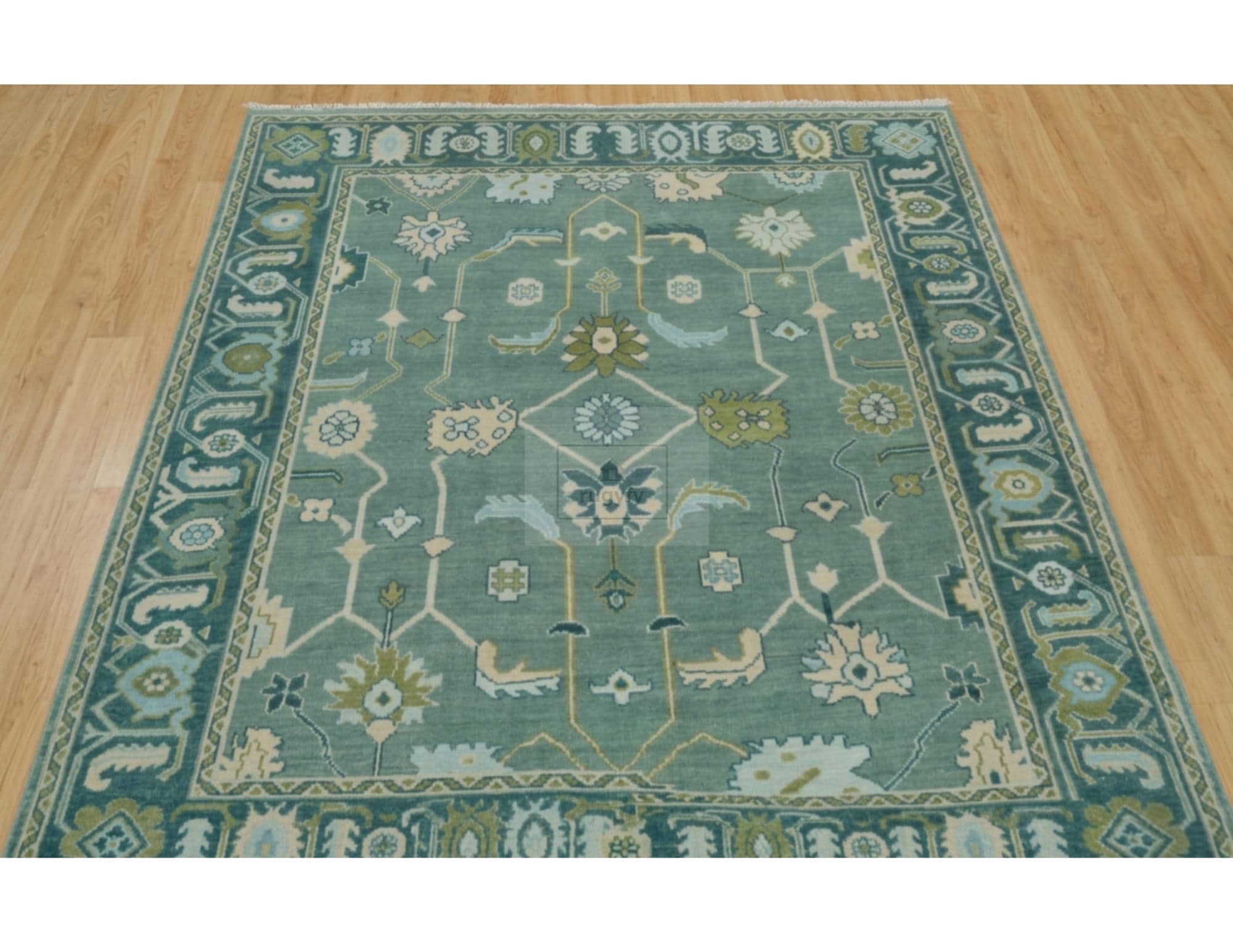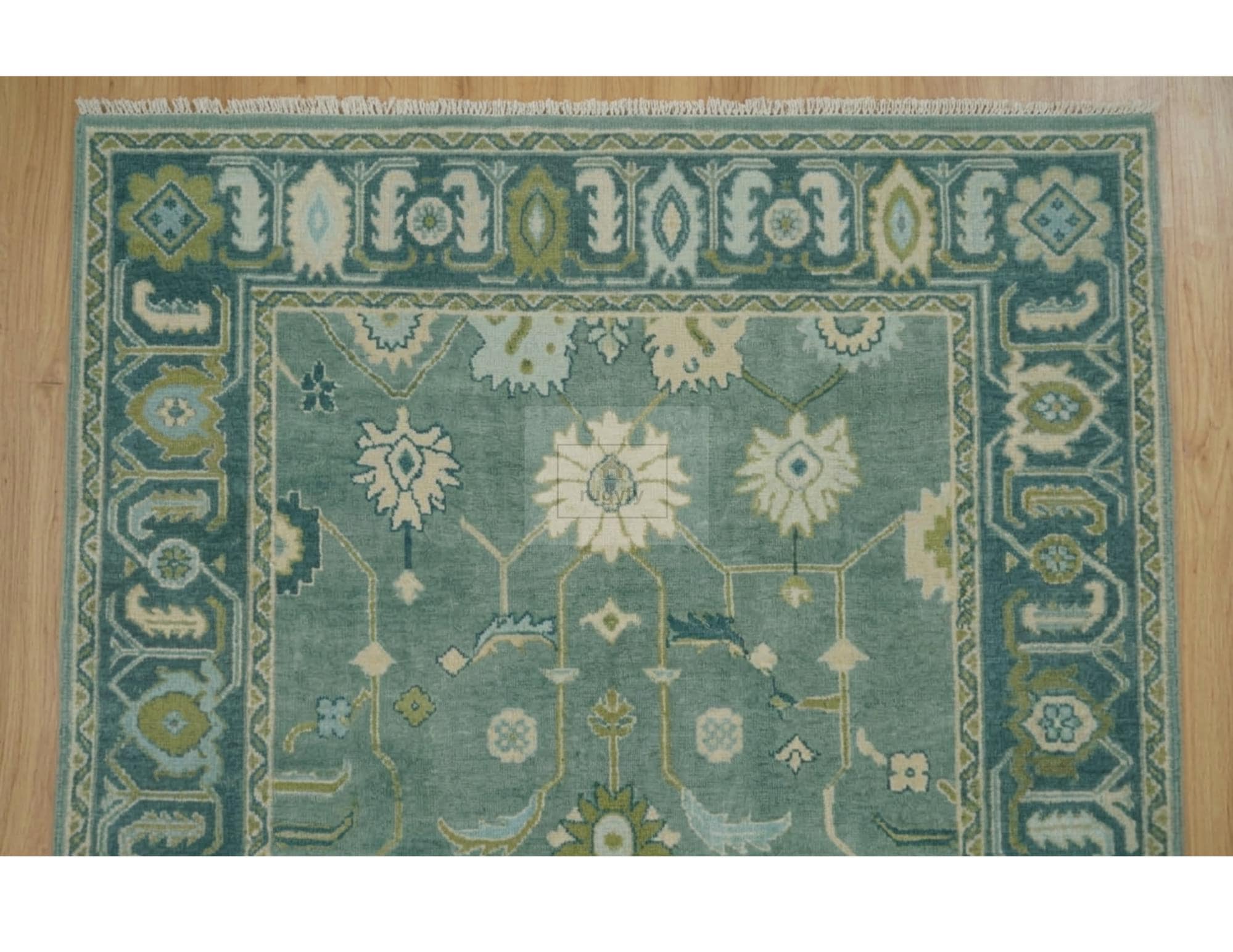 • Design: Traditional Oushak botanical floral with geometric border