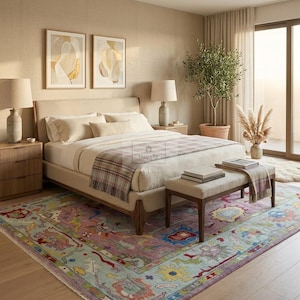 • Design: Traditional Oushak botanical floral with geometric border