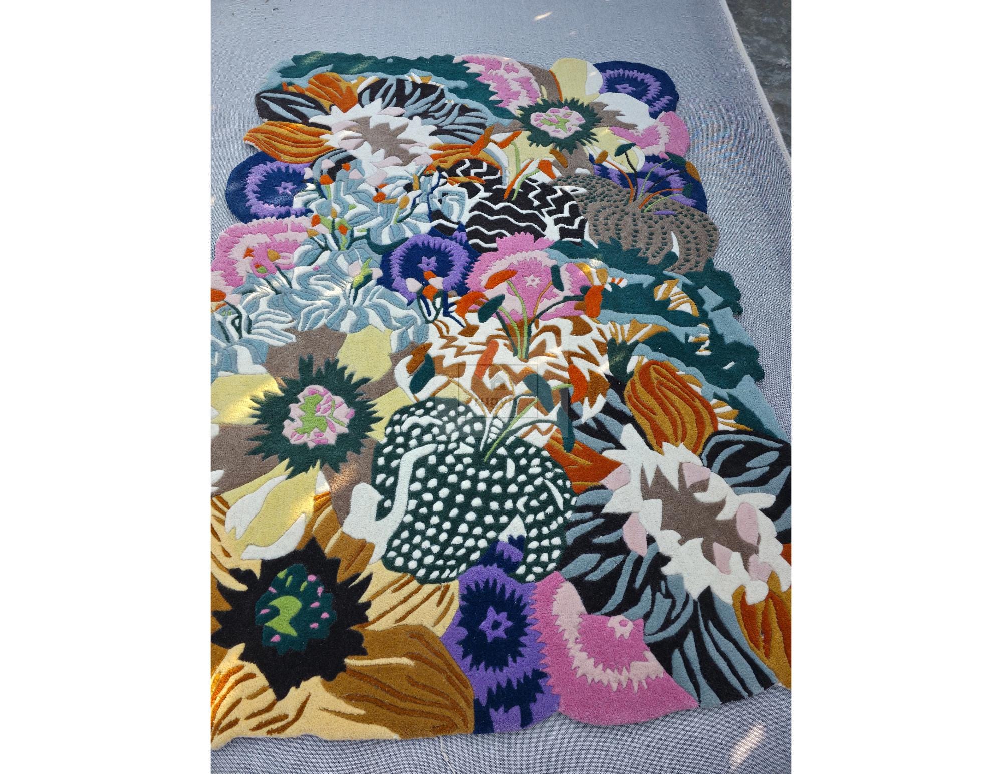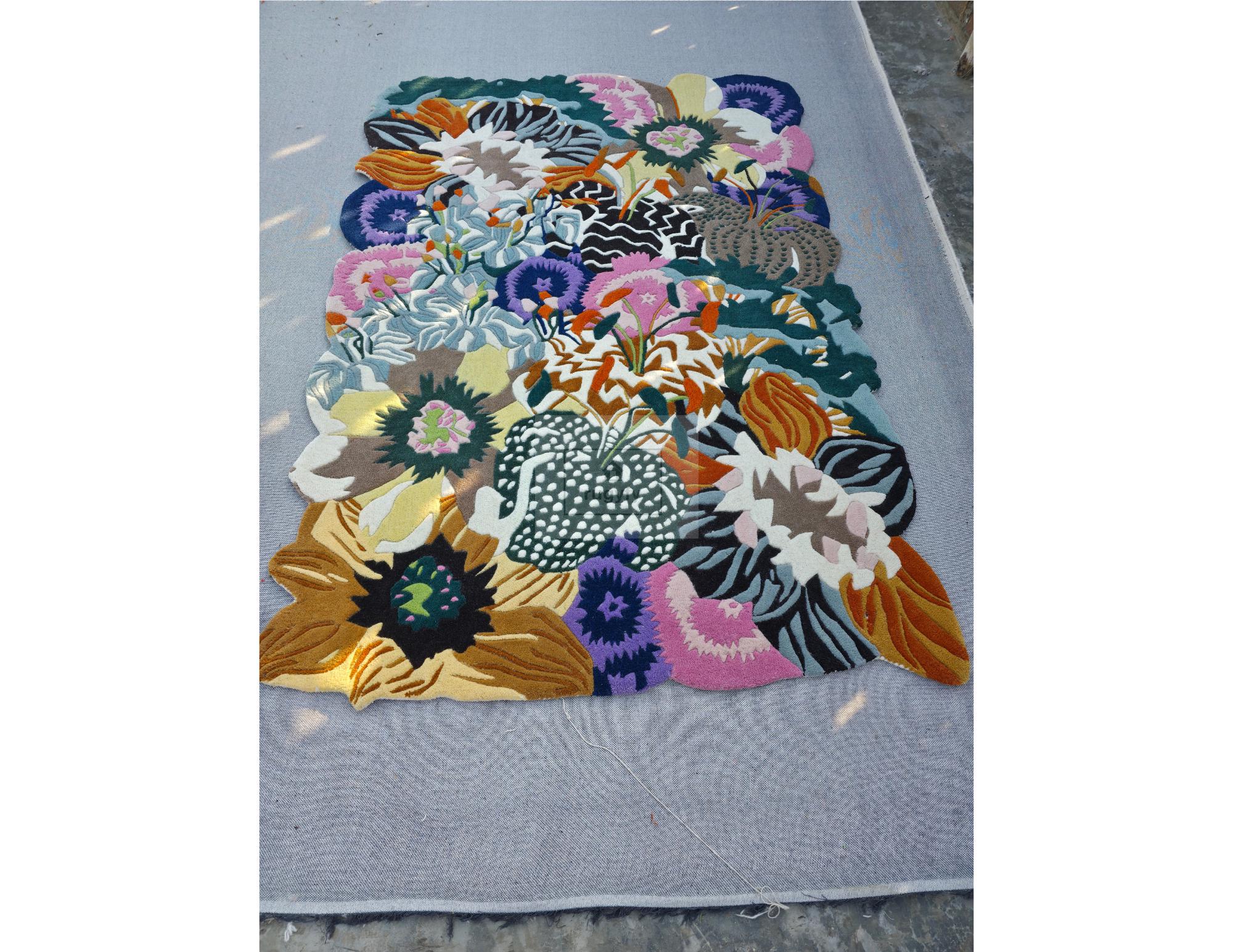 One (1) hand-tufted wool floral/flower-shaped area rug in the design shown.