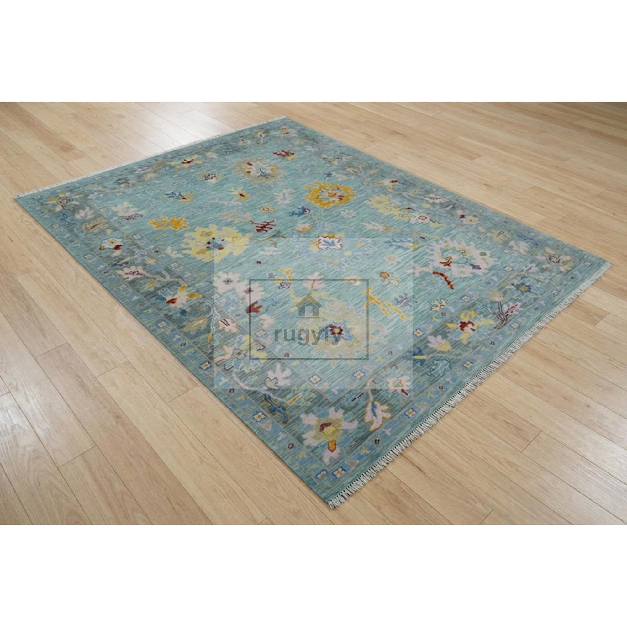 8x10 Teal Afghani Oushak Rug | Hand Knotted NZ Wool Floral Carpet | Aqua Blue Multicolor Area Rug | Cool Blue Patina Rug