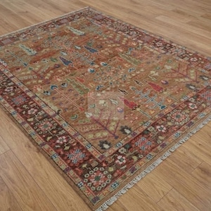 Expertly handcrafted by skilled artisans in India, this rug is made using 100% premium wool (New Zealand wool blend) on a durable cotton foundation. Each knot is tied by hand using traditional weaving techniques, ensuring exceptional durability and heirloom quality. The rug features a medium cut pile (~0.5 inch), offering both comfort underfoot and long-lasting performance. Every piece goes through a detailed process of dyeing, weaving, washing, and sun-drying—making each rug truly one of a kind.