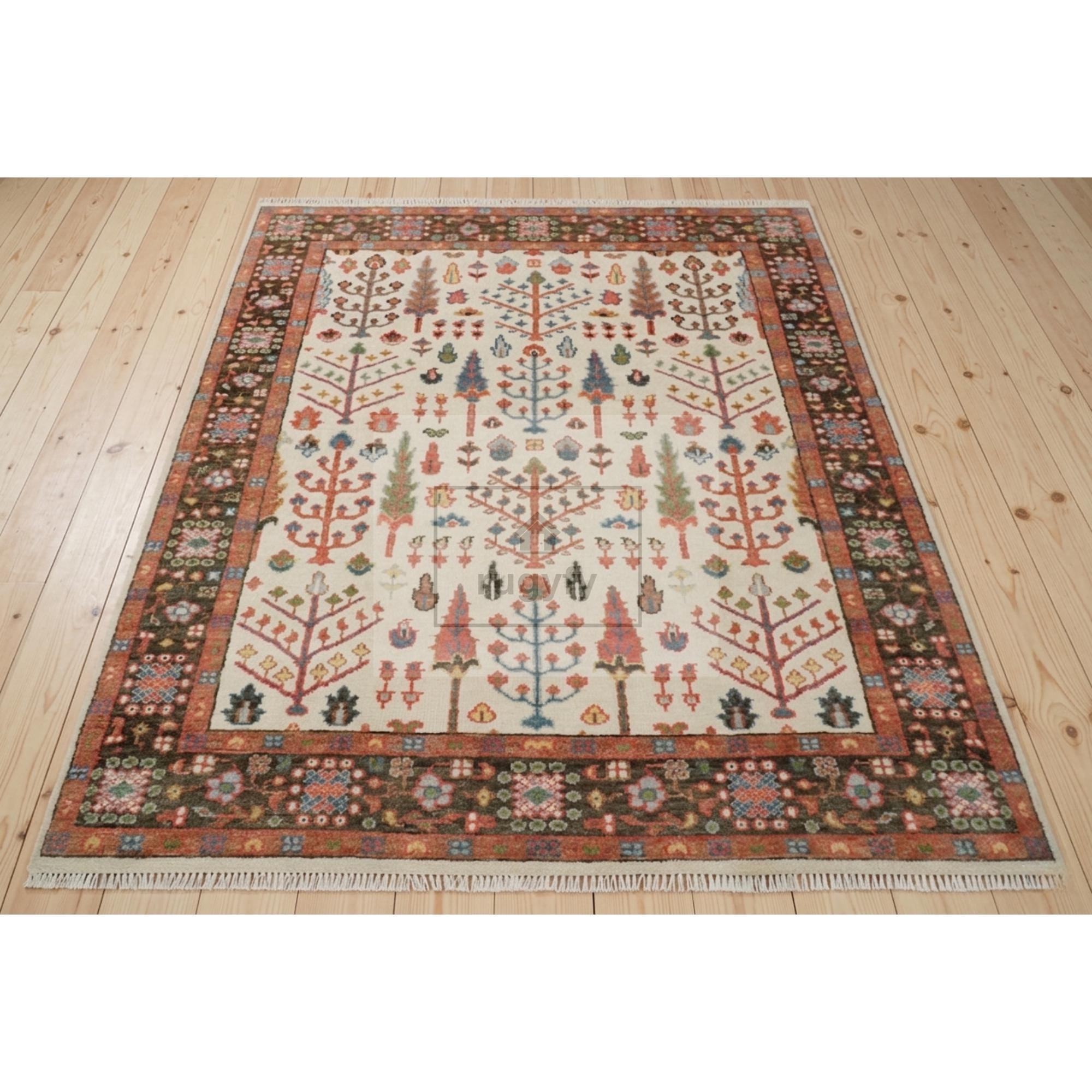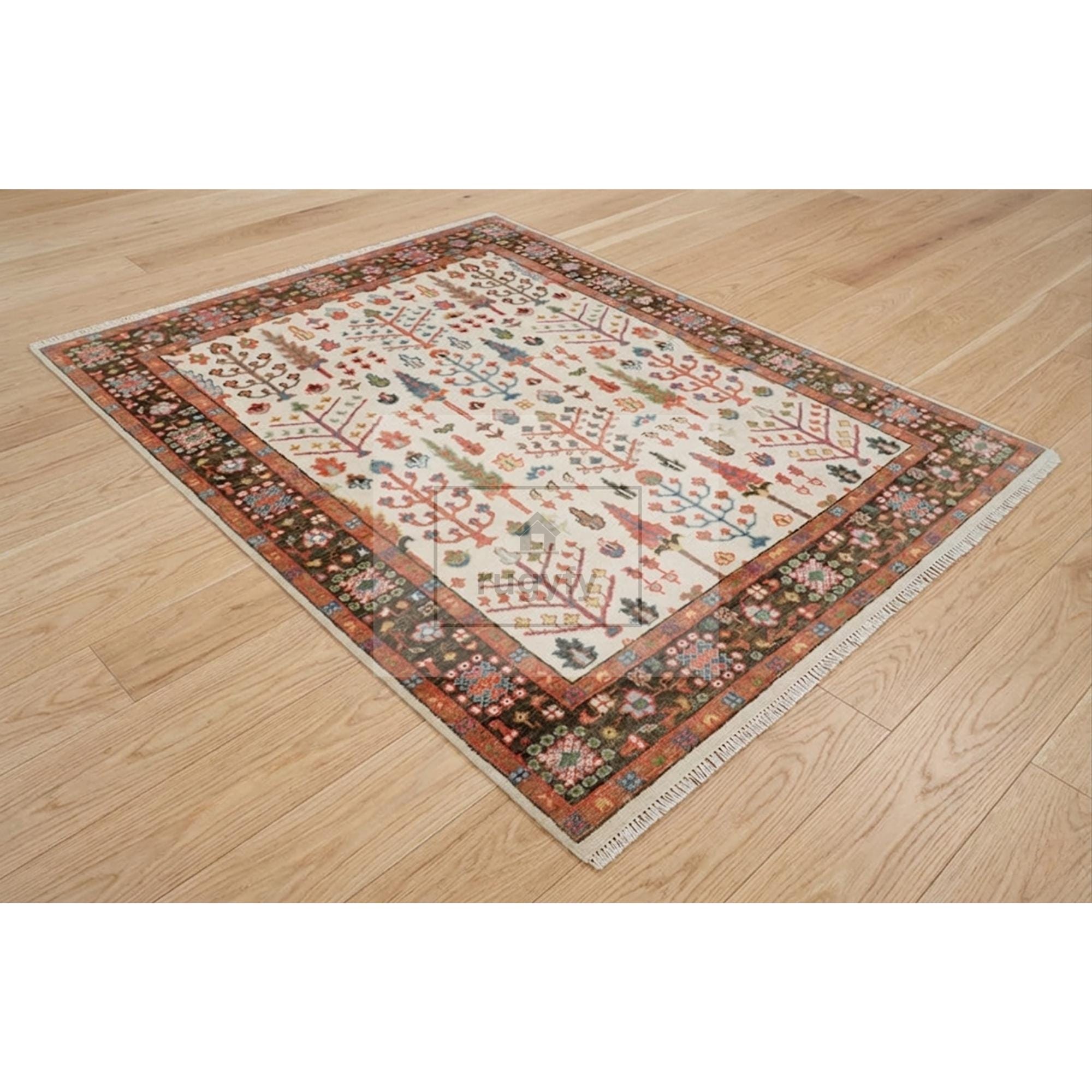 Hand-Knotted Tree of Life Oushak Rug — Premium New Zealand Wool