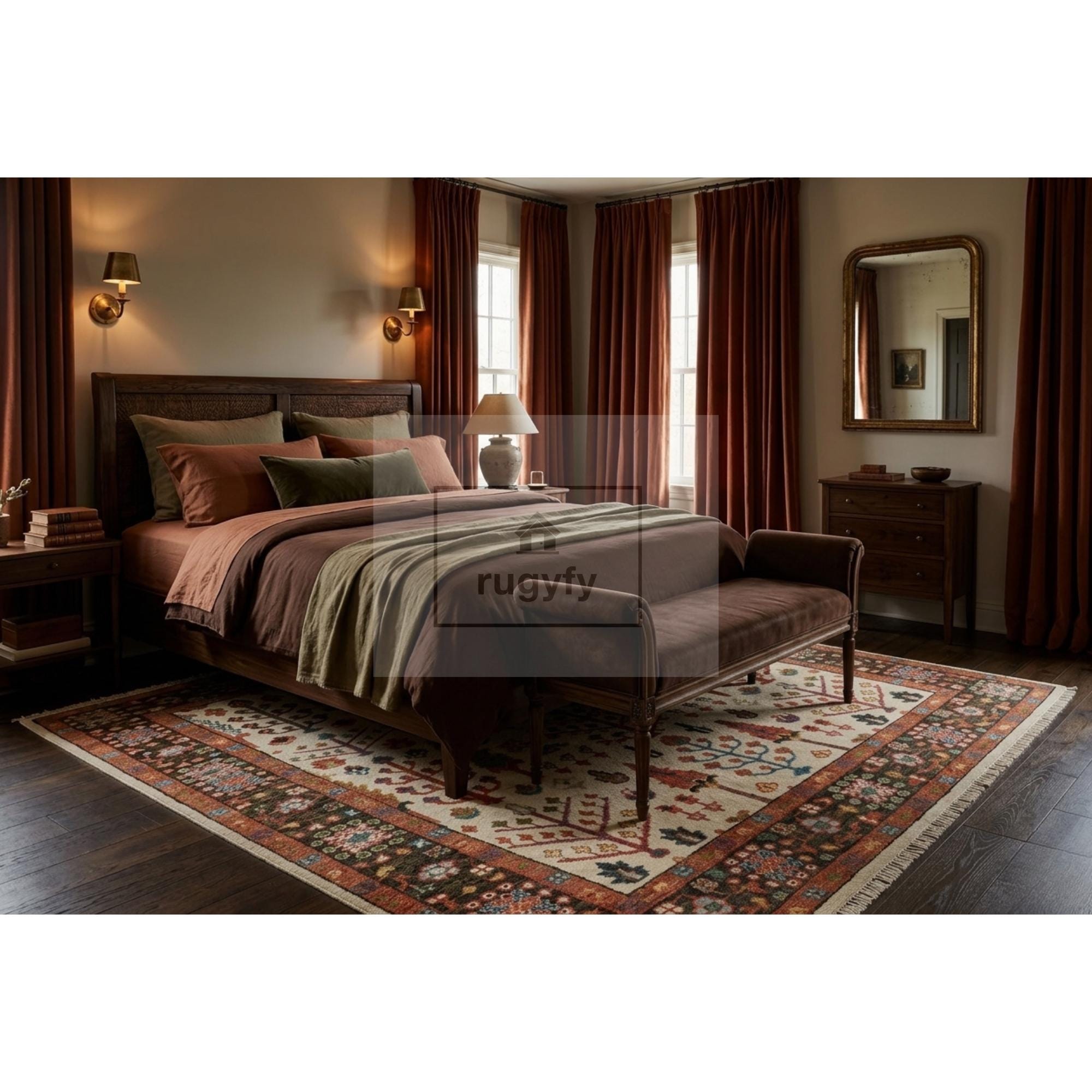 ✔️ Style: Vintage Turkish Oushak (floral motif)