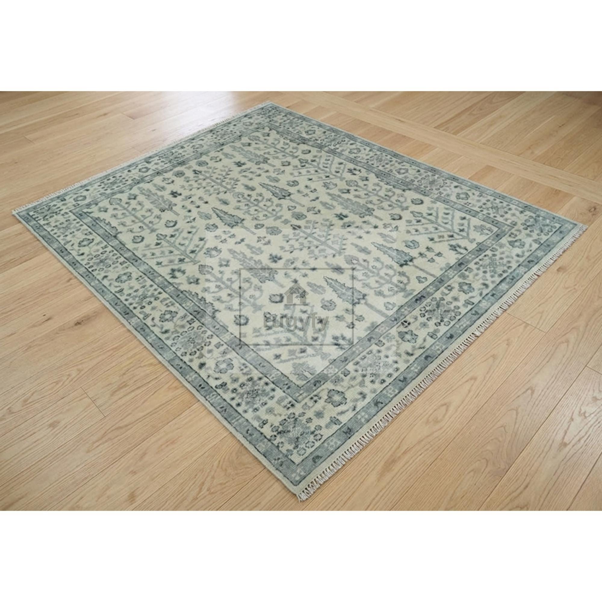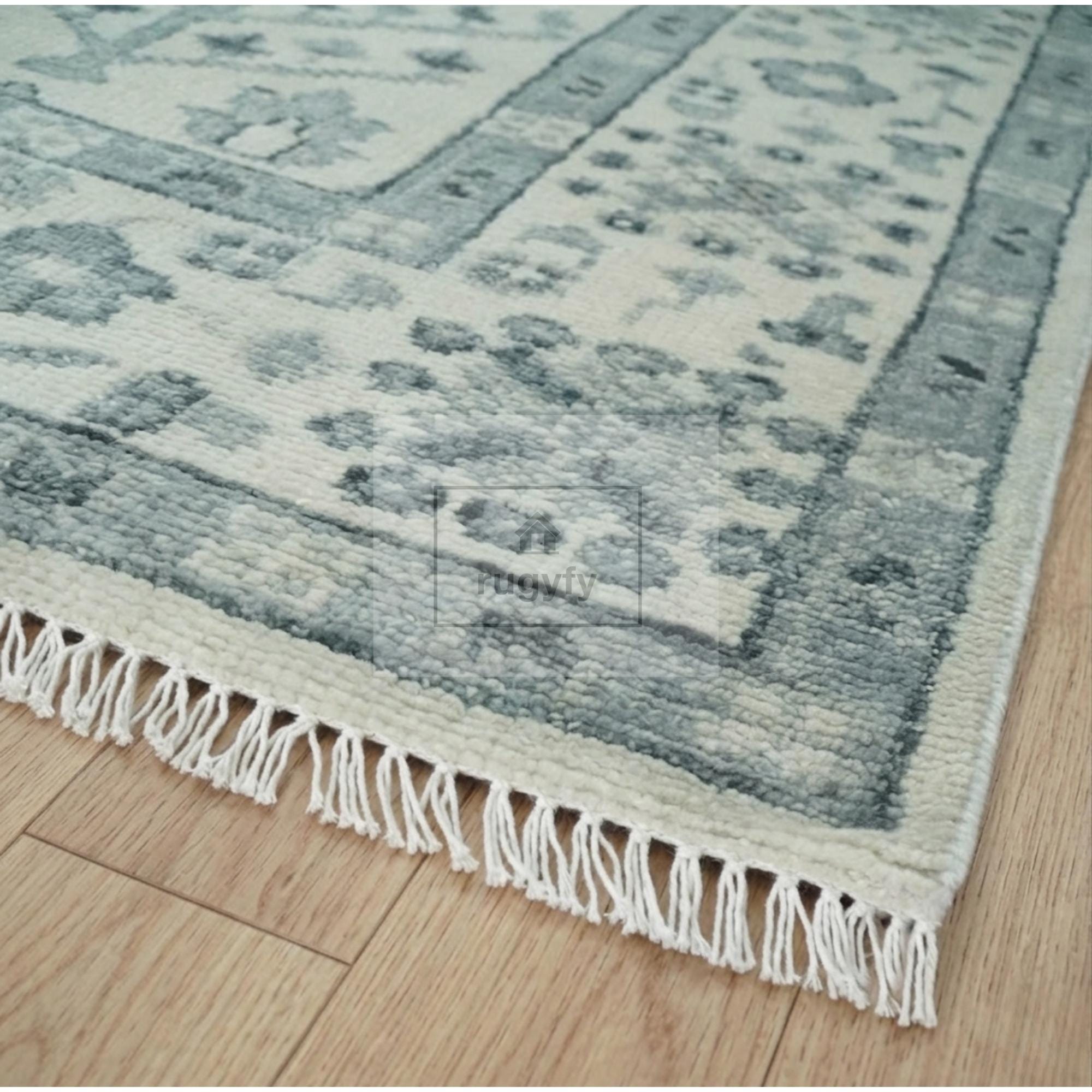 8x10 hand-knotted wool rug , Oushak rug” / “Oushak wool rug ,boho area rug , cream blue green rug ,Turkish style wool carpet , modern boho rug , neutral boho decor , floral geometric rug , soft pile wool rug , bohemian living room rug , pastel rug , handmade floor rug , hand spun wool carpet , sustainable wool rug , earth tone rug