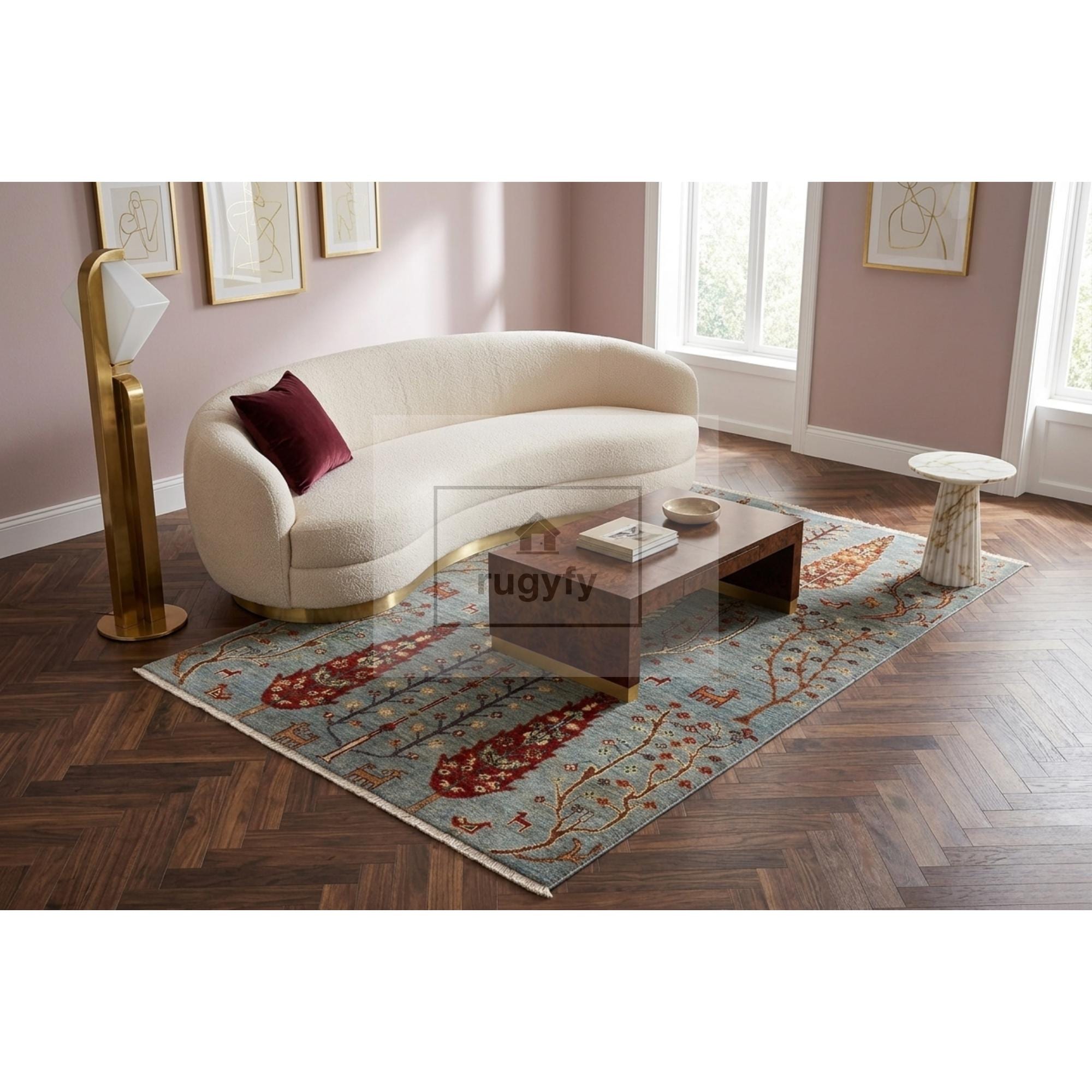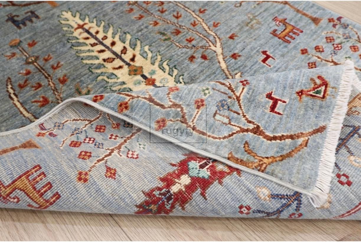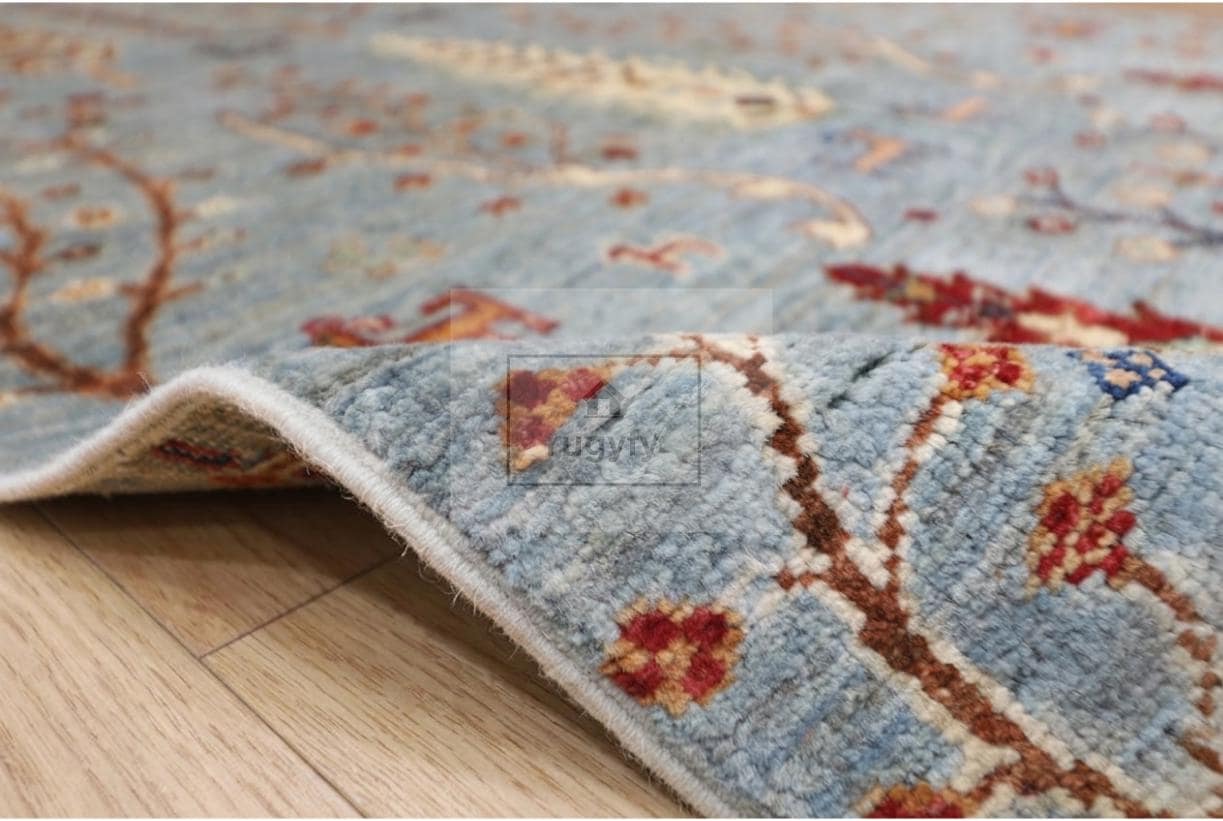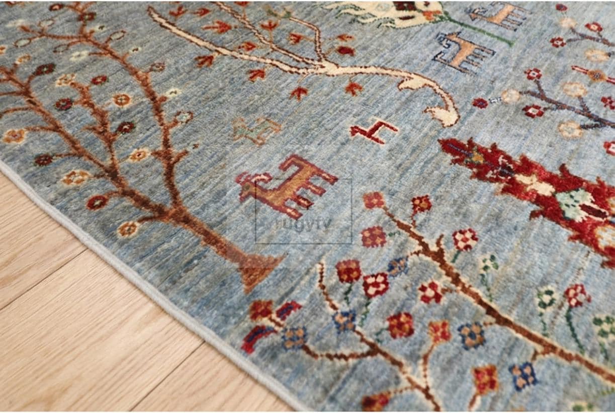 SKY BLUE TREE OF LIFE OUSHAK RUG — 8x10 FT | Hand Knotted Pictorial Wool Heirloom