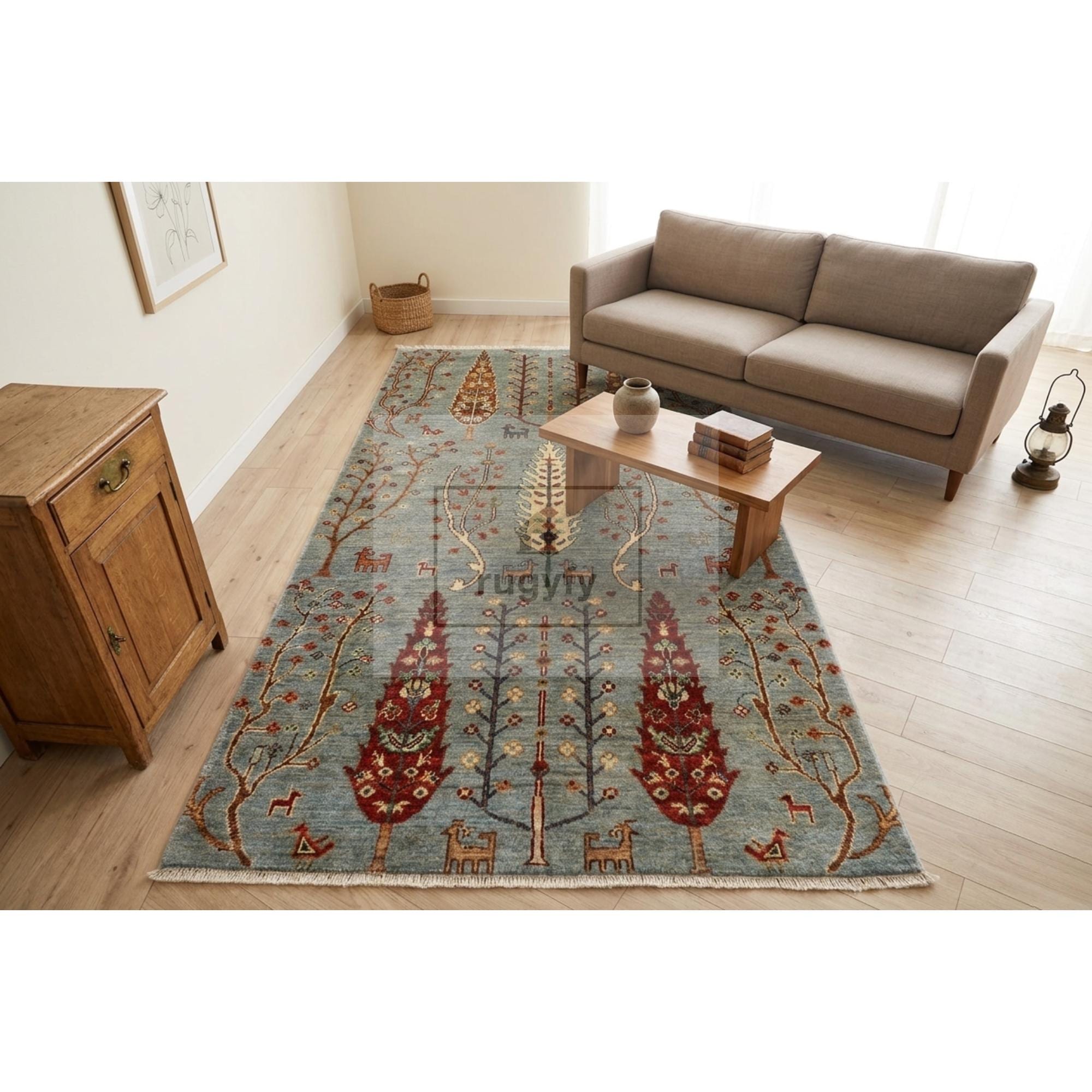 • Design: Traditional Tree of Life / Pictorial Oushak with tribal animal motifs